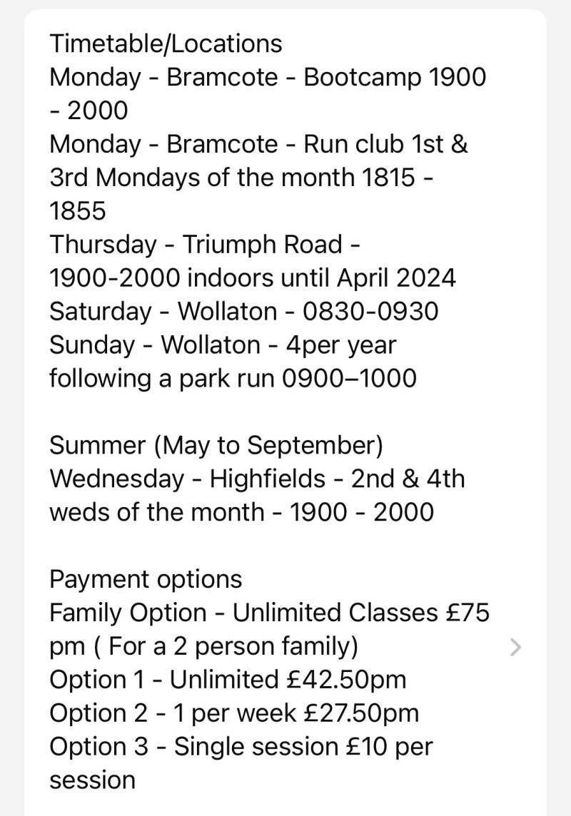 Plenty of variety including Kit sessions and fun sessions. Suitable for all ages and abilities no matter of experience with exercise.